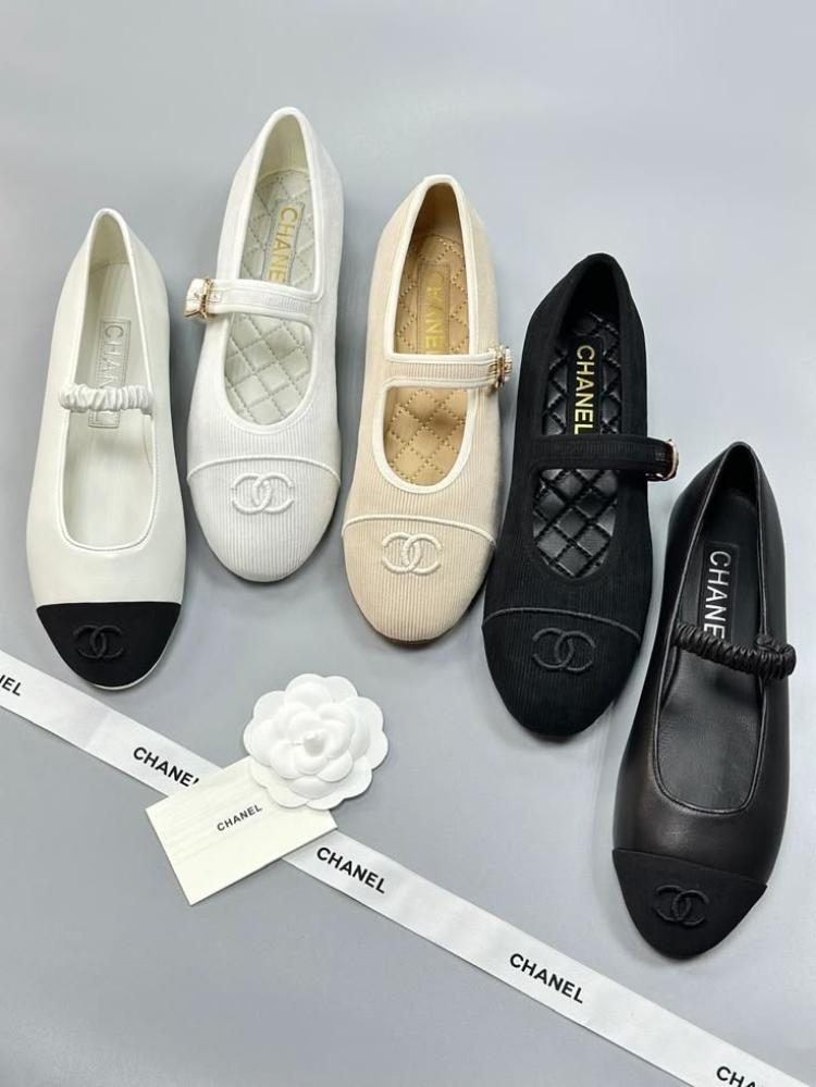 باليرينا شانيل فلات أسود مطرز بشعار cc أمامي